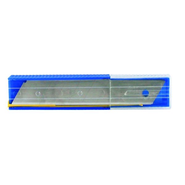Opakowanie z 10 odłamywanymi ostrzami trapezowymi 18 mm.