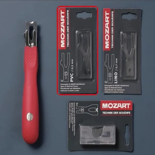 Widełki dystansowe 0,5 mm do struga MOZART. Do ścinania standardowego nadmiaru spawu (0,5 mm), głównie przy obróbce wykładzin PCV.